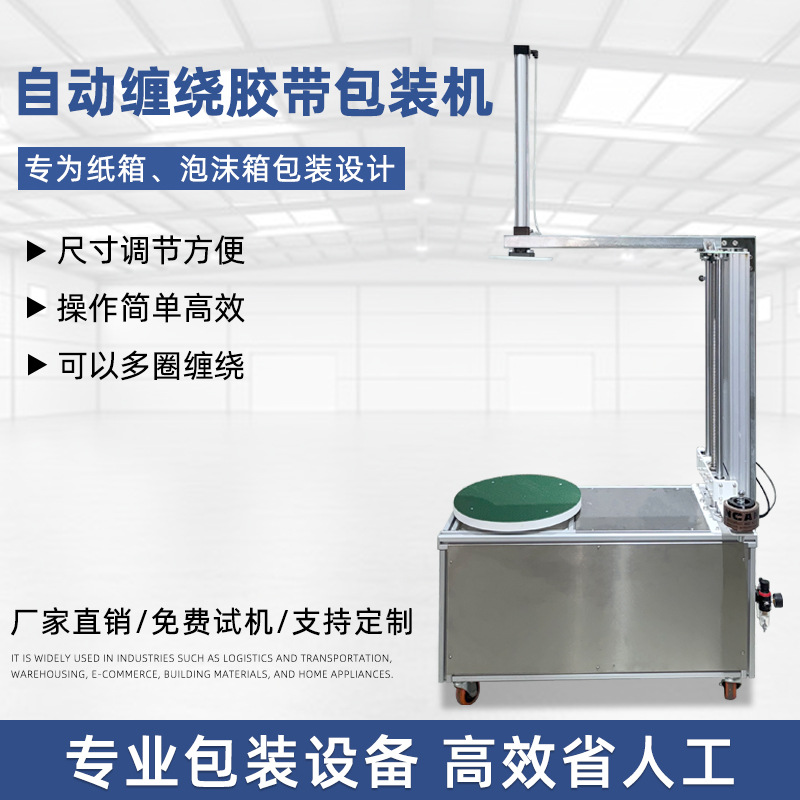 半自动胶带缠绕机灵活性强、成本低,适配中小批量、多规格产品的胶带缠绕需求,是中小型企业替代人工缠绕的高性价比选择。
