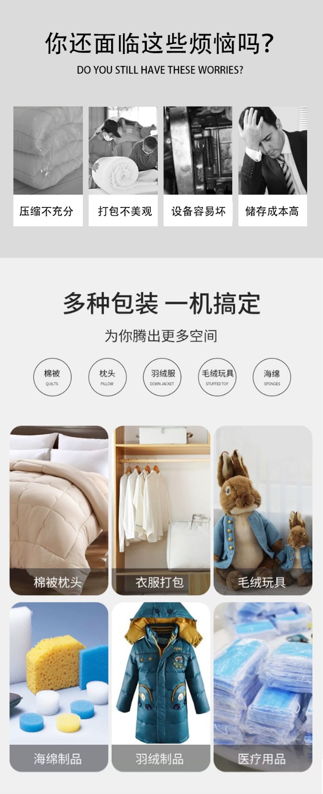 双工位压缩封口机:两个工位可同时作业,一边封口时另一个可放件 / 取件,适合中小批量、多规格产品(如多口味食品、电子元件袋),效率比单工位高 50%-80%。