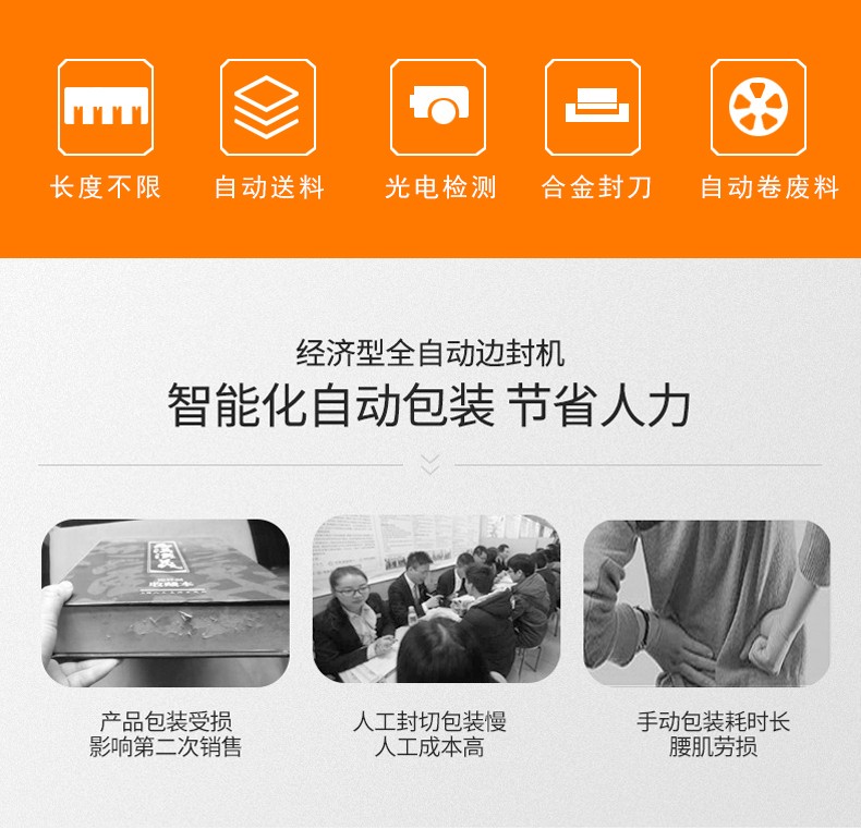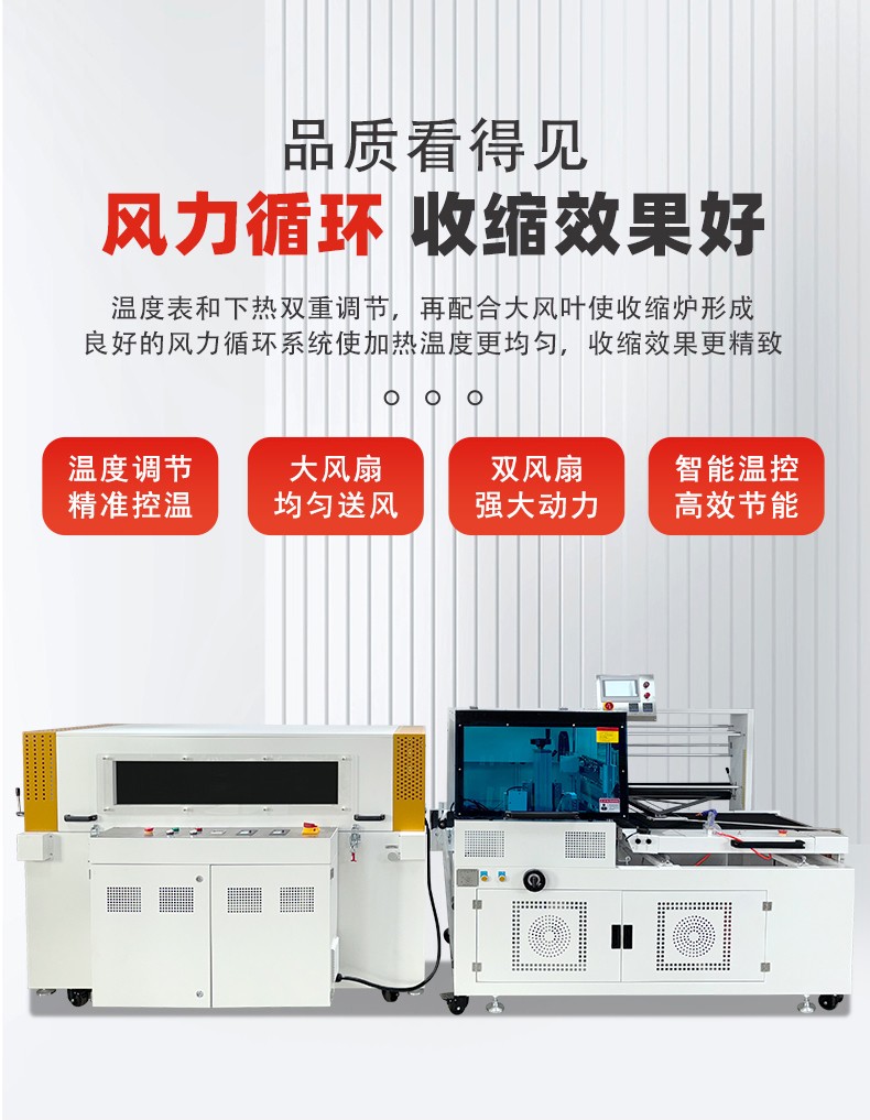 全自动边封热收缩包装机自动化程度高,边封设计使产品包装长度无限制