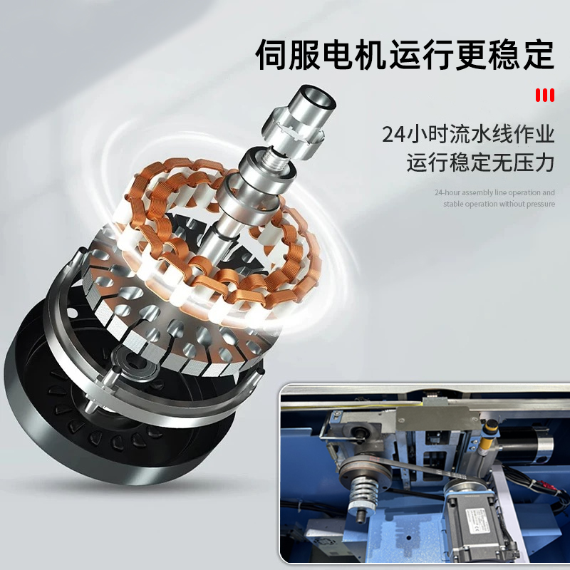 伺服电机作为核心部件,相比传统电机,能实现更高的控制精度和响应速度,可在捆扎时精准调整捆扎带张力,保障捆扎的紧密与均匀。