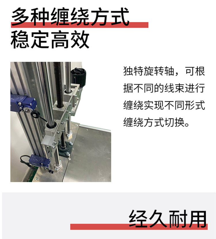 灵活性层面,它无需提前预设大量复杂参数,操作人员仅需简单培训,就能快速完成不同尺寸、不同形状产品的切换作业。通过人工微调定位与缠绕角度,实现高效适配,完美契合多品种、小批量的生产模式。同时,设备机身设计紧凑,无需配套自动化输送线,即便车间场地狭窄,也能灵活摆放,甚至可搭配脚轮实现移动作业,进一步拓展应用场景。